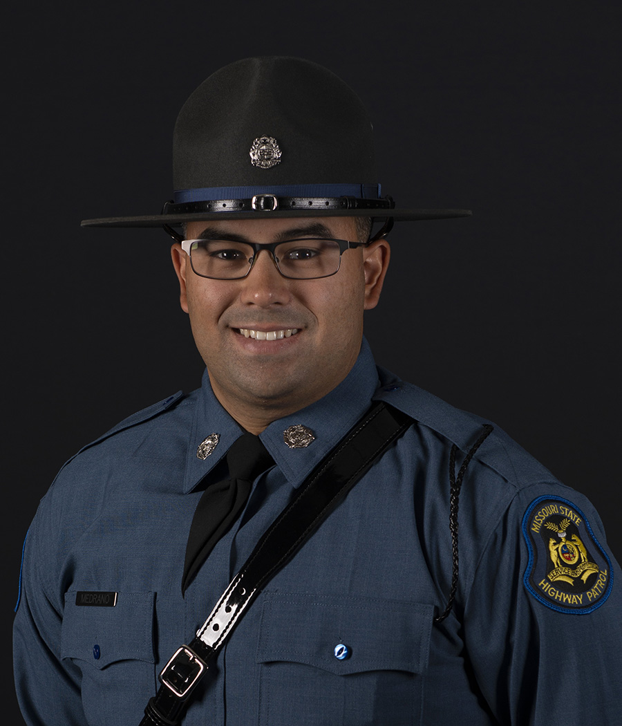 Trooper Nathaniel J. Medrano, a native of Marshall, Missouri, has been assigned to Zone 12, which serves the citizens of Johnson County. Trooper Medrano graduated from Marshall High School in Marshall, Missouri. He holds a Bachelor of Science in criminal justice from the University of Central Missouri in Warrensburg, Missouri. Trooper Medrano is married to Cindy (Aguilar).