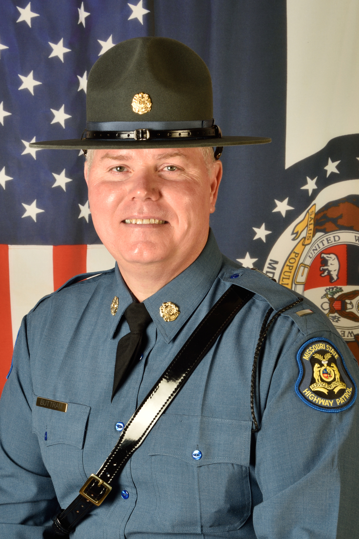 Buttram was appointed to the Patrol on August 1, 1986, as a member of the 58th Recruit Class. After graduating from the Patrol’s Law Enforcement Academy, he was assigned to Troop F, Zone 4, Audrain County. In January 1993, he was promoted to corporal and designated assistant zone supervisor of Troop F, Zone 9, Montgomery and Gasconade counties. Buttram was promoted to sergeant in September 1994, and designated zone supervisor of Troop F, Zone 5, Camden and Miller counties. Buttram was promoted to lieutenant effective June 1, 2017, and designated assistant director of the Research & Development Division, General Headquarters, Jefferson City, MO.